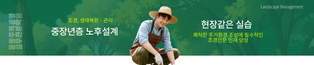 본 과정에서는 조경 기초 이론을 바탕으로 도면 해석, 식재 계획, 조경 시설물 시공, 현장 관리까지 조경 업무 전반의 흐름을 단계적으로 학습합니다.